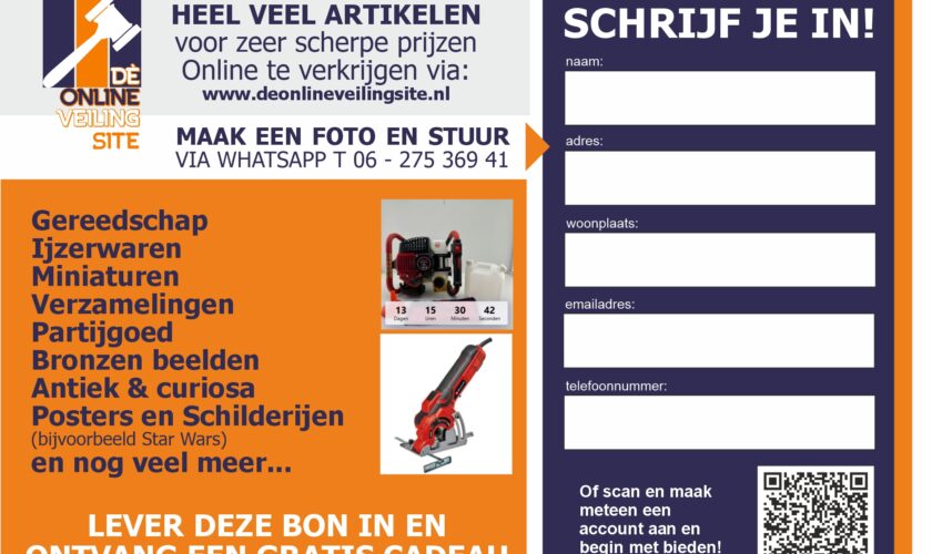 Maak een account aan, doe mee aan een van onze veilingen en scoor een te gekke deal...